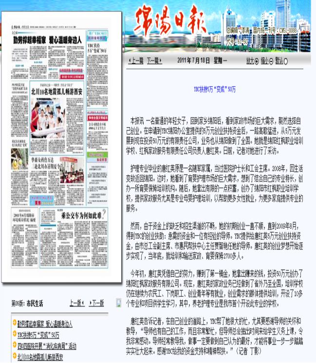 綿陽日報:綿陽紅楓家政公司創(chuàng)業(yè)之路