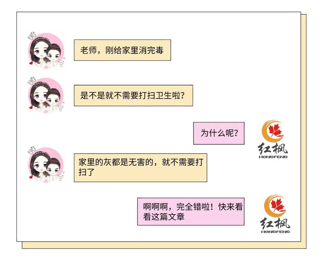但消完毒后家里就不需要打掃了嗎?最近有客戶給紅楓老師發(fā)來消息詢問,這其實是很多朋友對消毒存在的一個誤區(qū)。